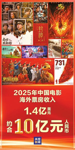 今年以来,在《哪吒之魔童闹海》《南京照相馆》等优秀影片带动下,国内电影市场红红火火,中国电影海外市场也取得可喜成绩。截至10月20日,据不完全统计,2025年中国电影海外票房收入合计1.4亿美元,约合人民币10亿元,超过2024年全年。海外上映国家和地区达到46个,年度海外票房收入超过百万美元的影片达到13部。其中,500万美元以上的7部,1000万美元以上的2部,5000万美元以上的1部。